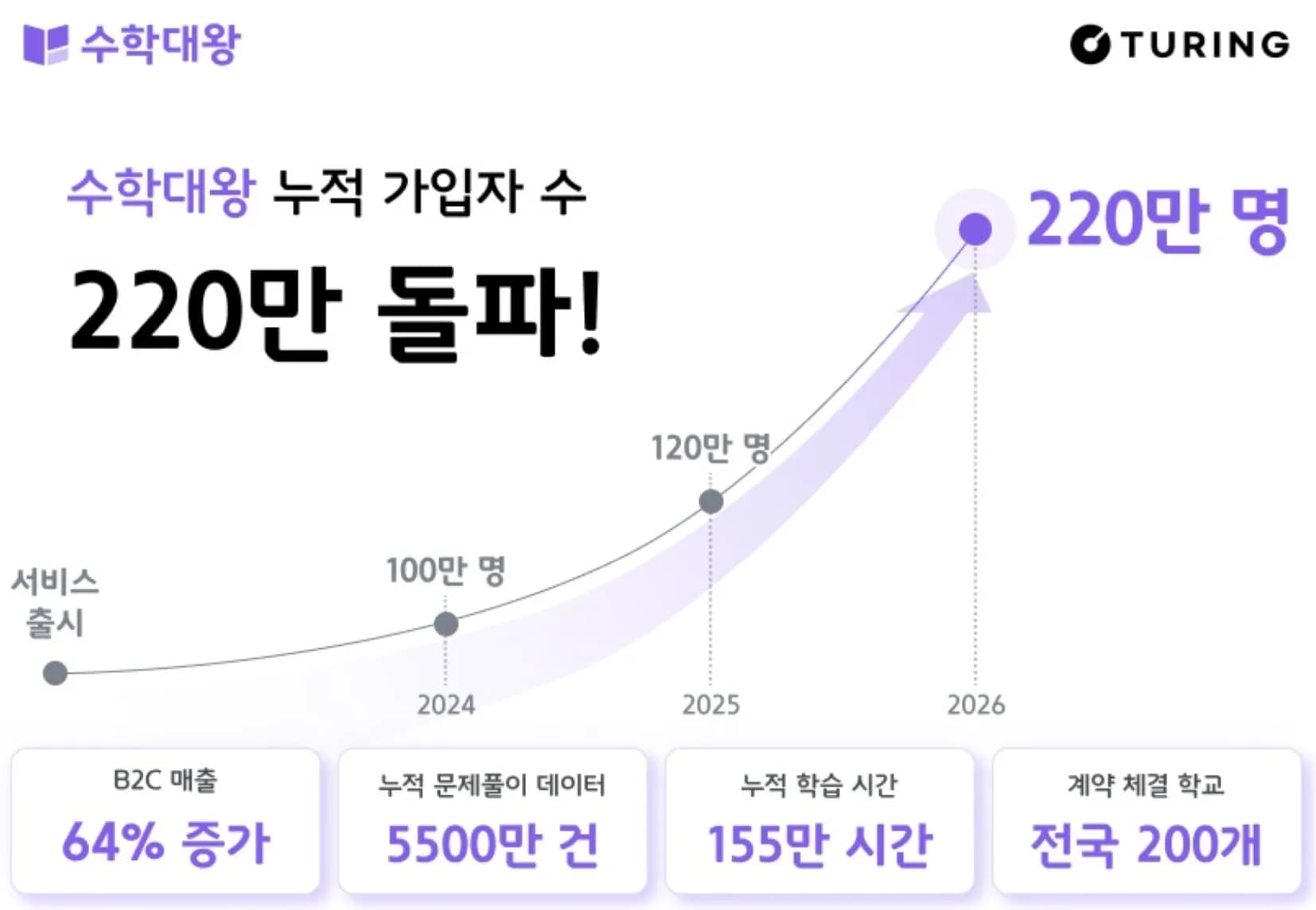 IT·플랫폼튜링 수학대왕 가입자 220만 돌파…B2C 매출 비중 64%AI 에듀테크 스타트업 튜링의 '수학대왕'이 누적 가입자 220만 명을 돌파하며 가파른 성장세를 보이고 있습니다. B2C 매출 비중을 64%까지 끌어올리며 수익 구조 전환에 성공한 튜링은 학교 현장 도입을 확대하며 에듀테크 시장의 혁신을 주도하고 있습니다.권여미2026년 4월 24일0